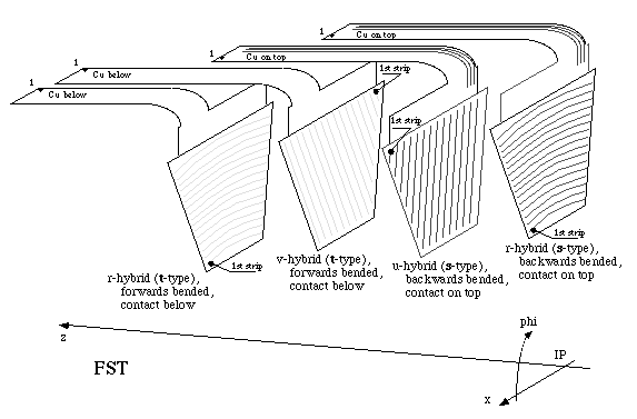 Both (u- and v-) detectors and hybrids are of the same type but mounted back-to-back.